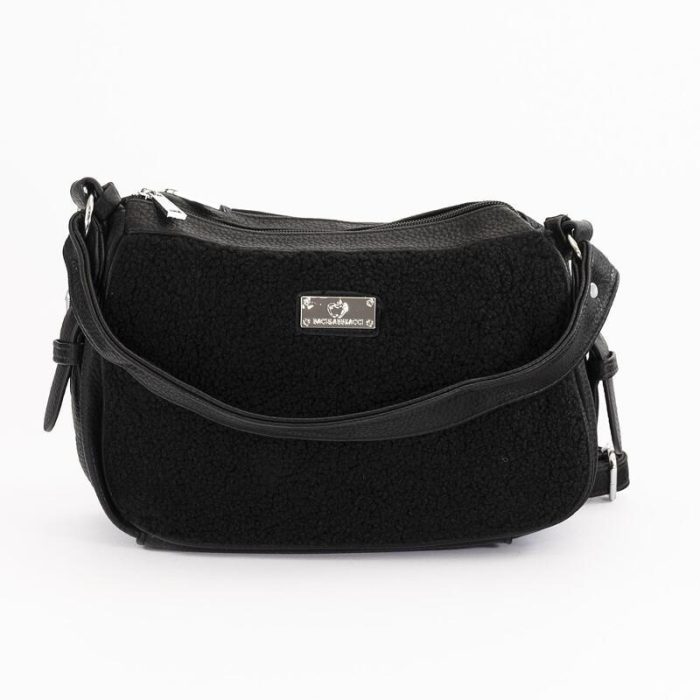 Дамска чанта от еко кожа и еко плюш в черен цвят – код: BA707