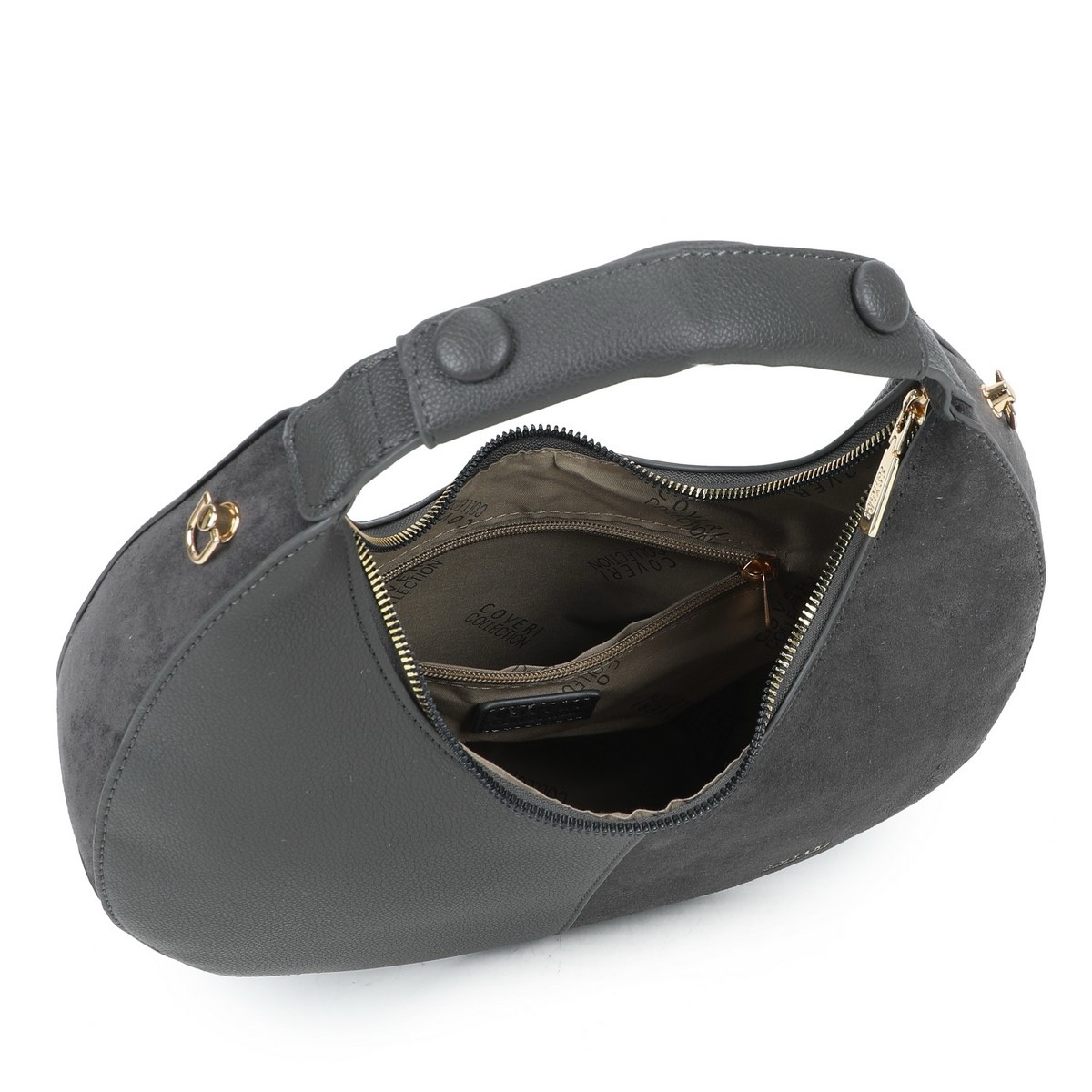Дамска чанта от еко кожа и велур в сив цвят – код: СС306-2 MD Style
