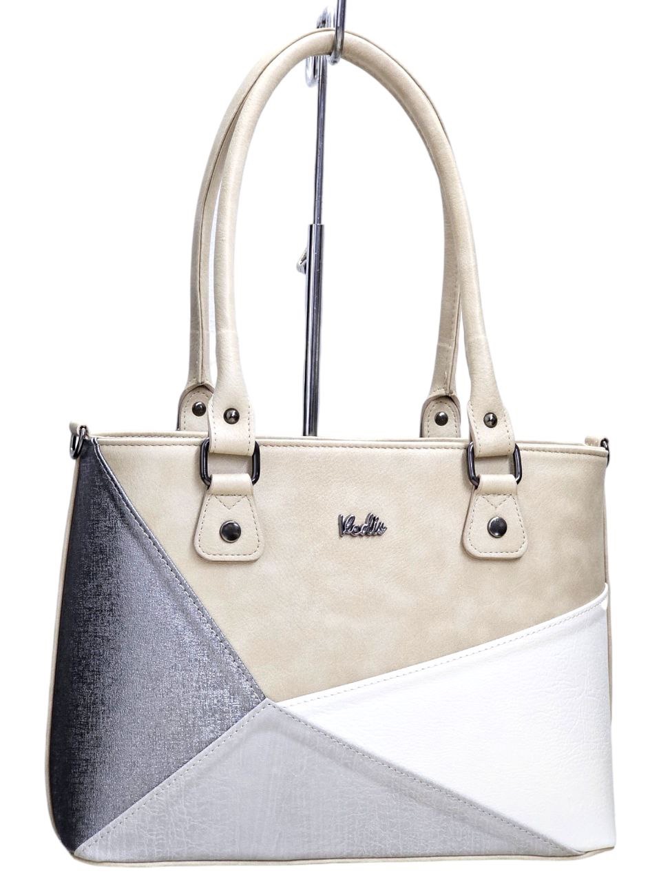 Дамска чанта от висококачествена еко кожа в сребрист цвят – код: MD0058