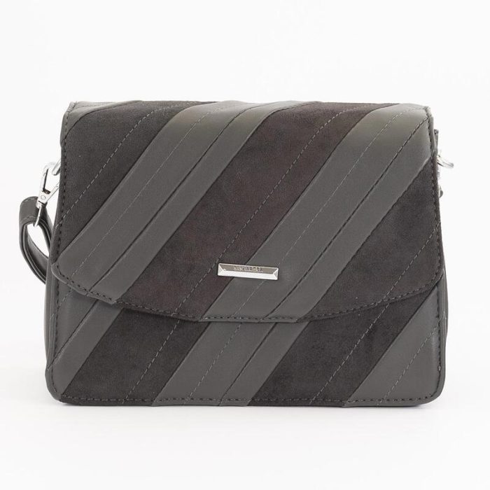 Дамска чанта с дълга дръжка SILVIA ROSA от еко кожа и велур в сив цвят – код: 25-355-1
