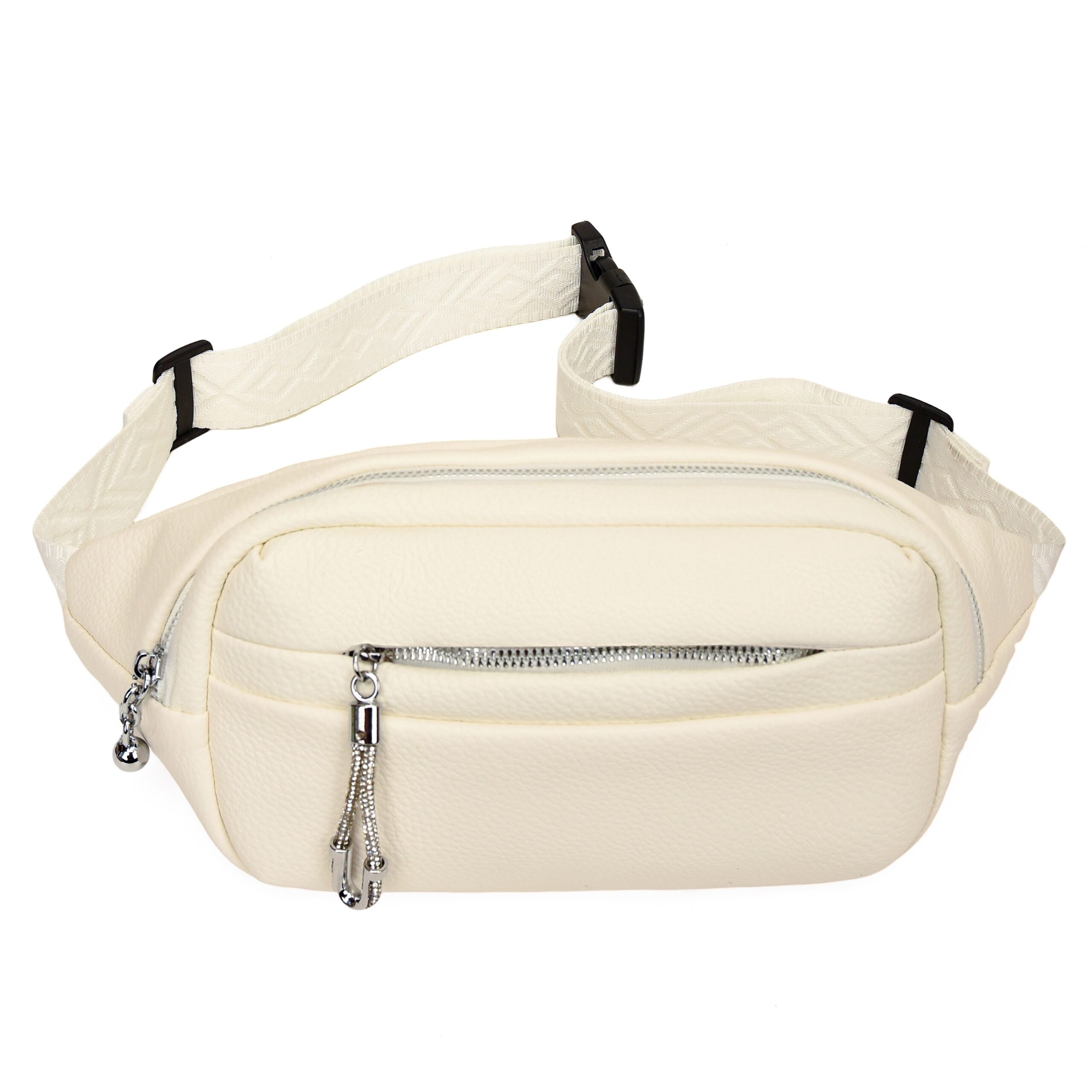 Дамска чанта за кръста / паласка от висококачествена еко кожа в бял цвят – код: MC715-1