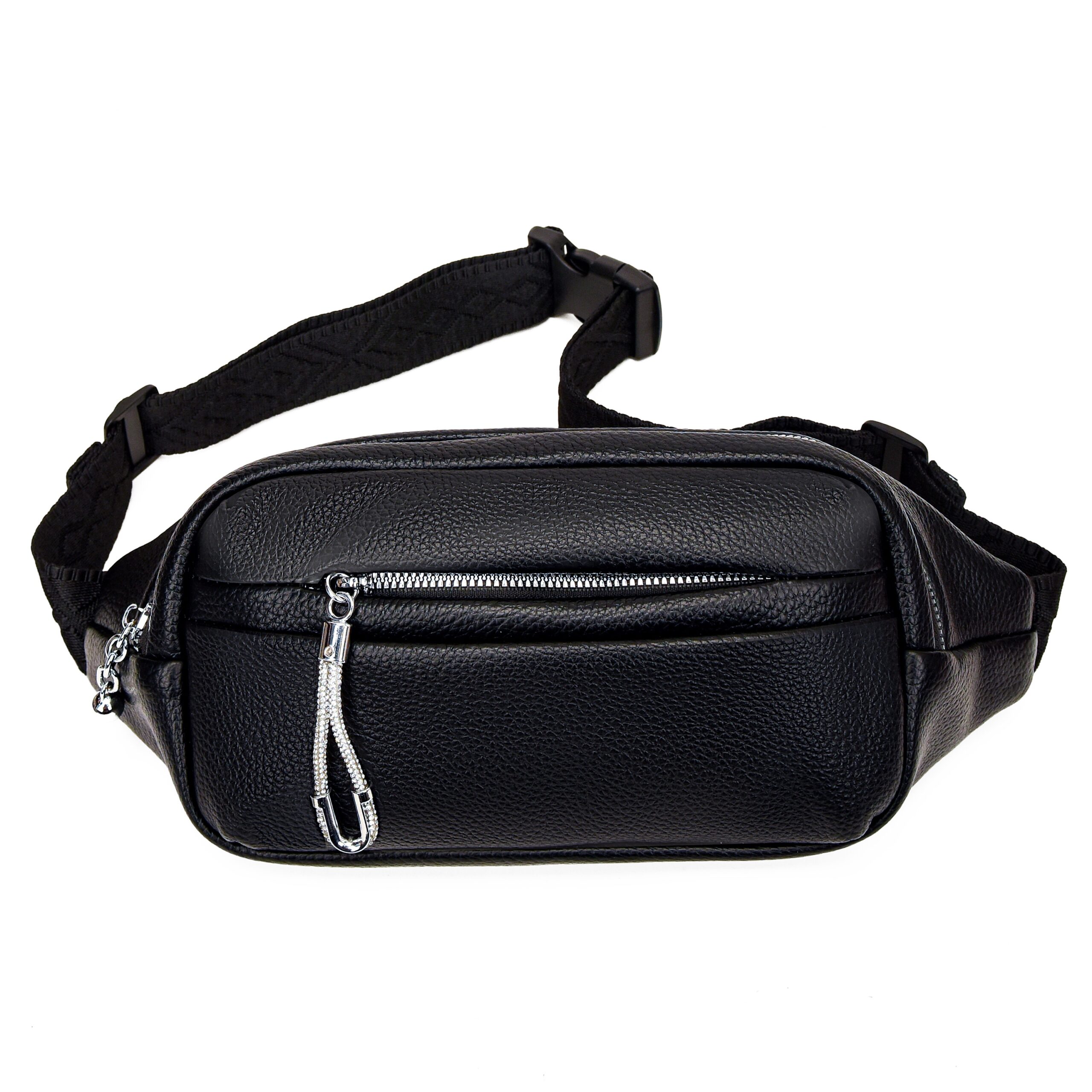 Дамска чанта за кръста / паласка от висококачествена еко кожа в черен цвят – код: MC715-5