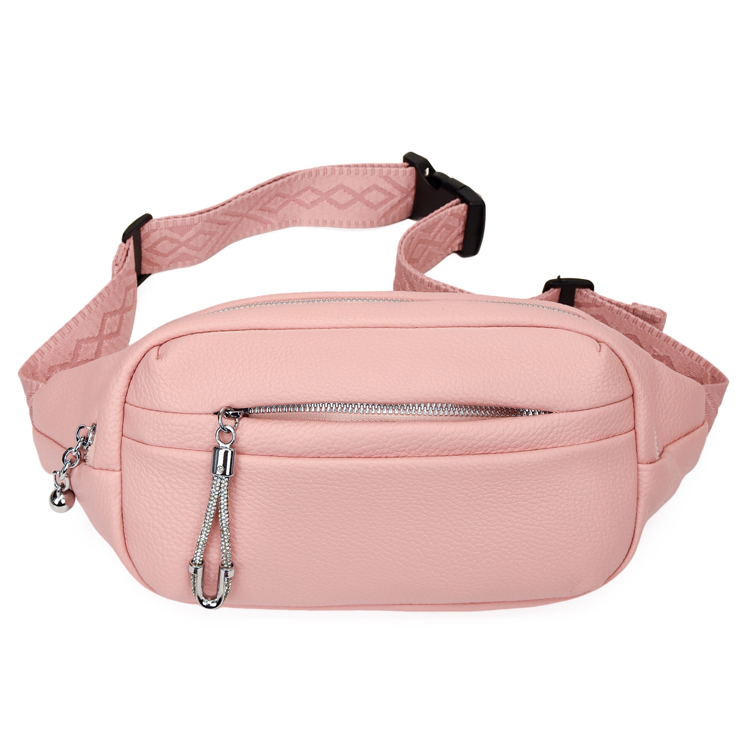 Дамска чанта за кръста / паласка от висококачествена еко кожа в розов цвят – код: MC715-2