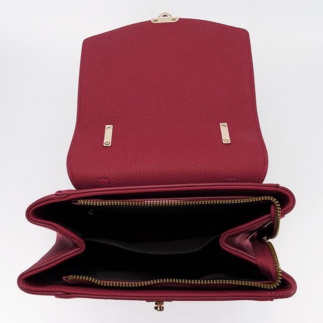 Модела разполага с две основни отделения за затварящи се с общ цип, джобче с цип и отделение за телефон/документи от вътрешната и джобче с цип отзад от външната страна.