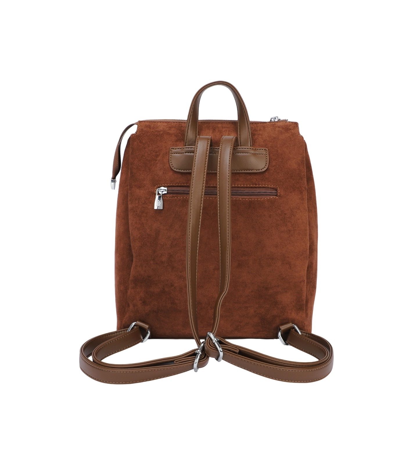 Дамска раница от висококачествена велурена еко кожа Regina Schrecker в кафяв цвят – код: RS6052 MD Style Дамска раница от висококачествена велурена еко кожа Regina Schrecker в кафяв цвят – код: RS6052 MD Style