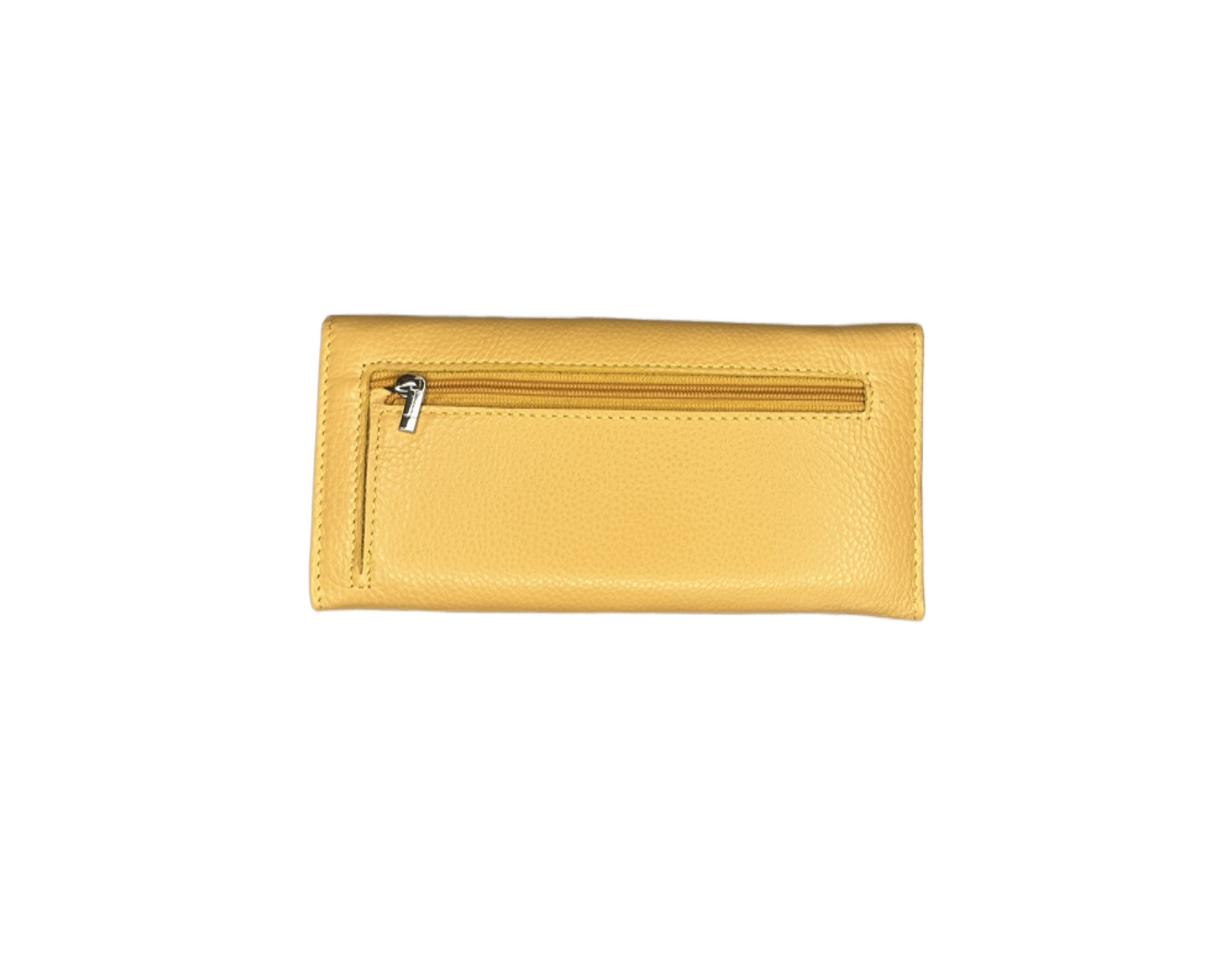 Това елегантно дамско портмоне е изработено от висококачествена естествена кожа в модерен горчичено жълт цвят. Съчетава изтънчен дизайн с функционалност, предоставяйки достатъчно пространство за организиране на вашите вещи.