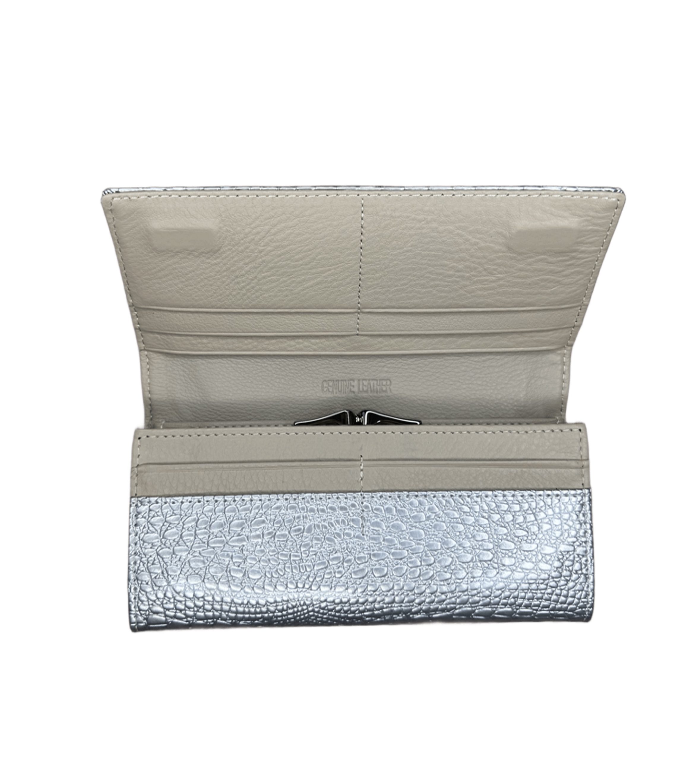 Лачено дамско портмоне от естествена кожа в сребрист цвят – код: MDW-FE826 MD Style