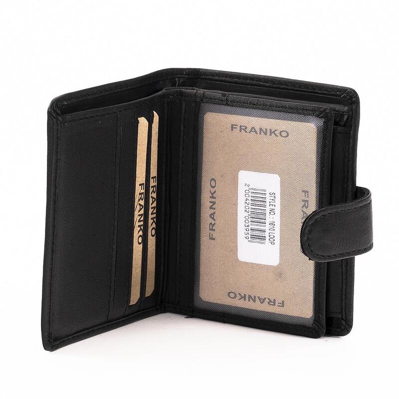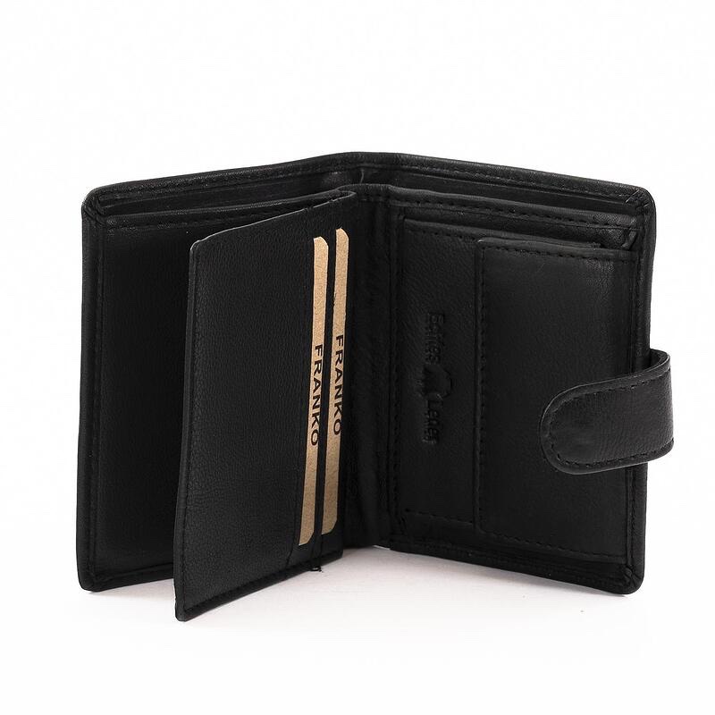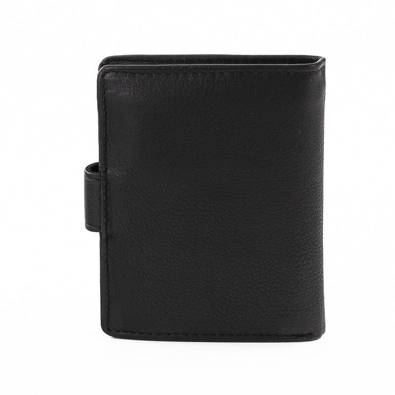 Портфейла разполага с две отделения за банкноти, отделение за монети закопчаващо се посредством копче и шест отделения за карти/документи.