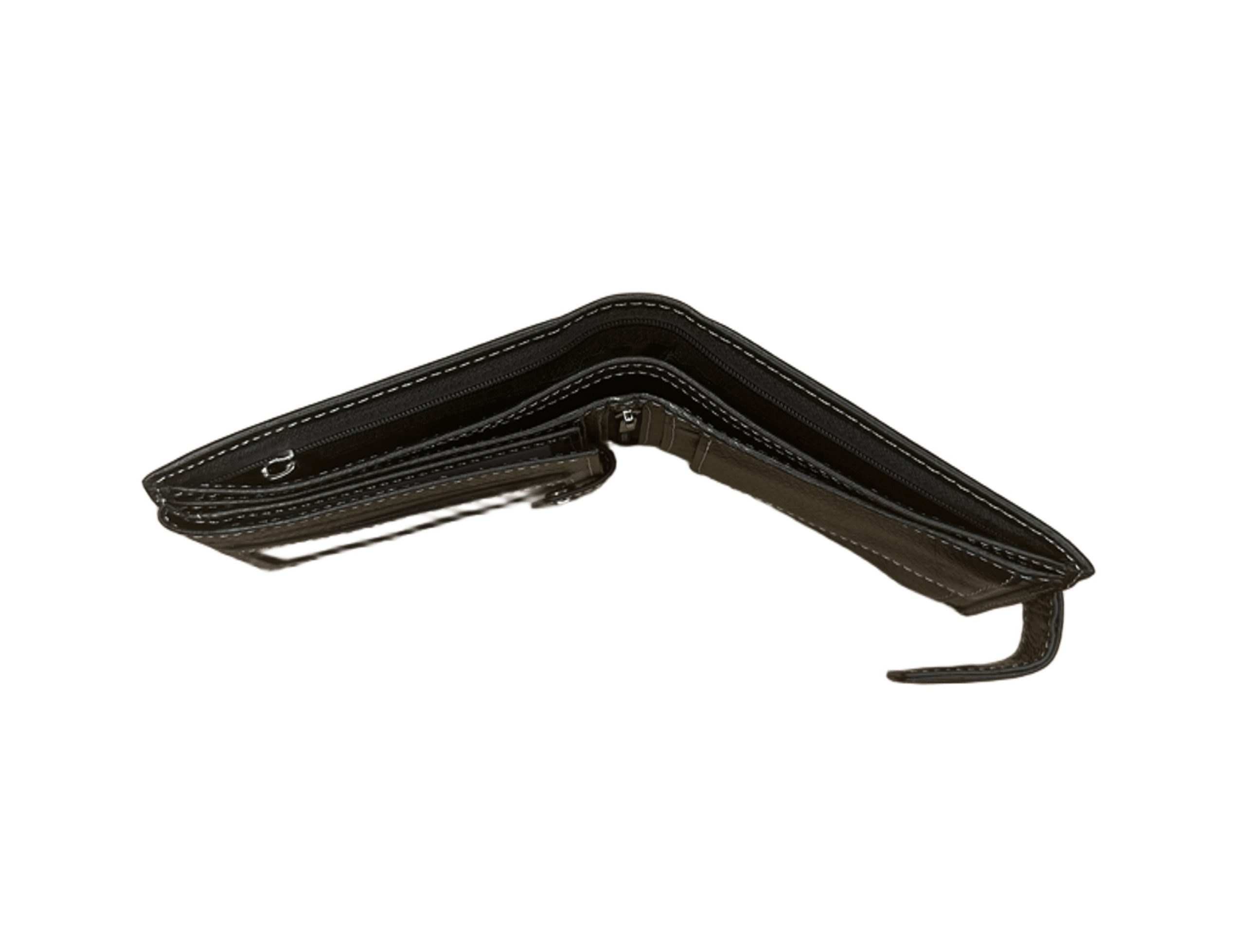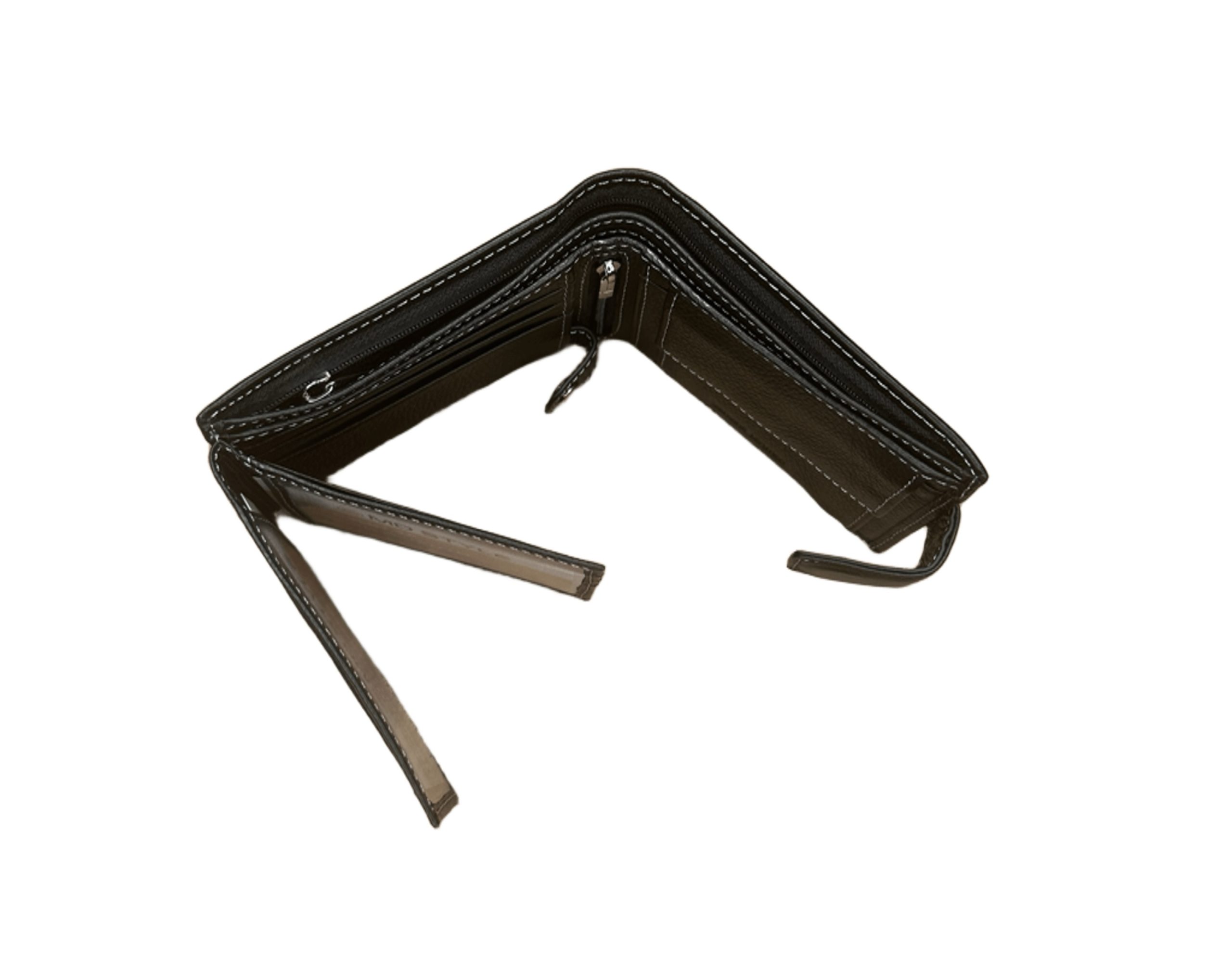 Портфейла разполага с 2 отделения за банкноти, допълнително отделение с цип, монетник и 10 отделения за карти/документи. Закопчаването е посредством магнит.